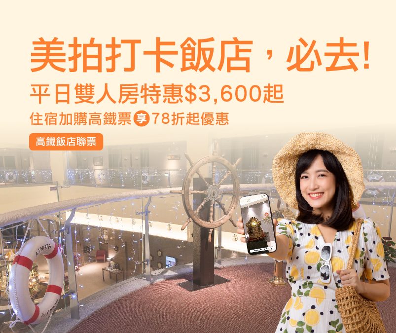 官網訂房加購高鐵車票享78折起優惠。
