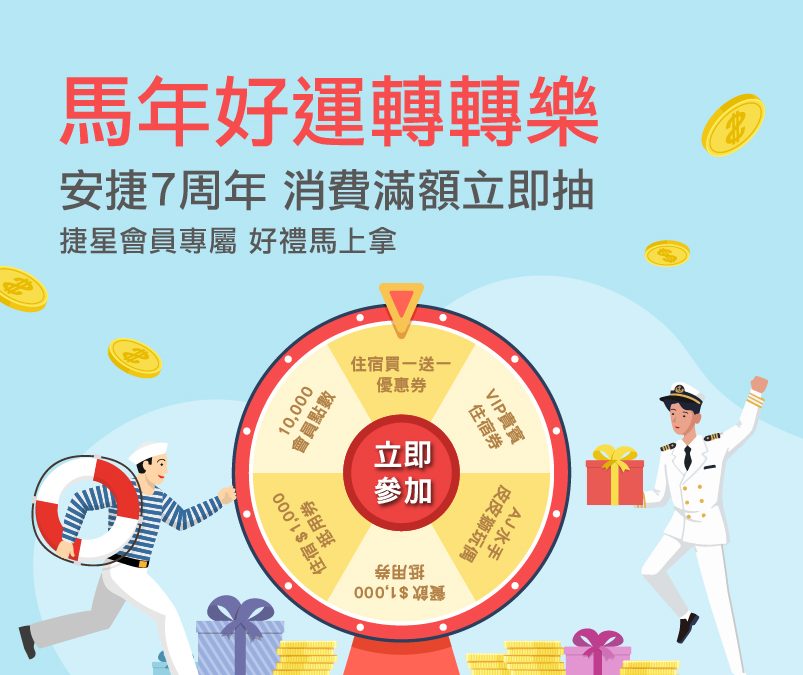 歡慶新竹安捷國際酒店7周年,馬年好運轉轉樂。